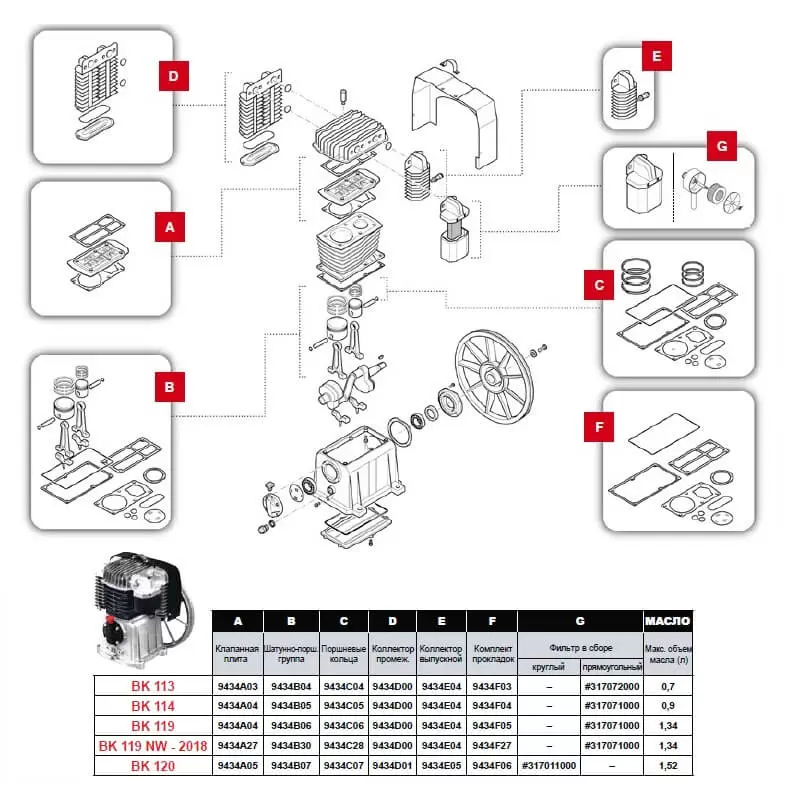 9434F03 Ремонтный комплект прокладок (F) для компрессора FINI BK 113