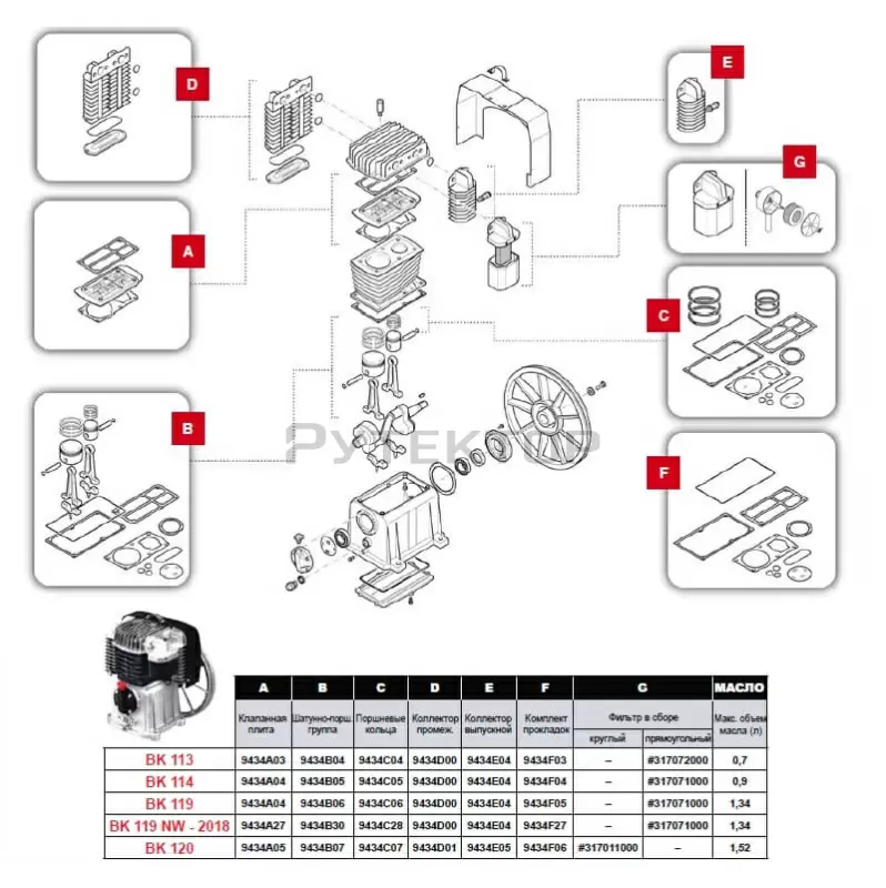 9434F05 Ремонтный комплект прокладок (F) для компрессора FINI BK 119