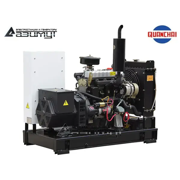 Компоненты дизель генераторной установки: первичный четырехцилиндровый дизельный двигатель радиаторного охлаждения Quanchai QC480D, объемом 1,809 л, номинальной мощностью 14 кВт, синхронный бесщеточный 1-фазный генератор Azimut Z164CI выходным напряжением 220 Вольт, шкаф управления электростанцией (ШУЭ) с контроллером HGM6120 и автоматическим выключателем, аккумуляторные батареи, стальная рама с интегрированным топливным баком. Запуск и остановка ДГУ по первой степени автоматизации осуществляются в ручном режиме. НАЗНАЧЕНИЕ