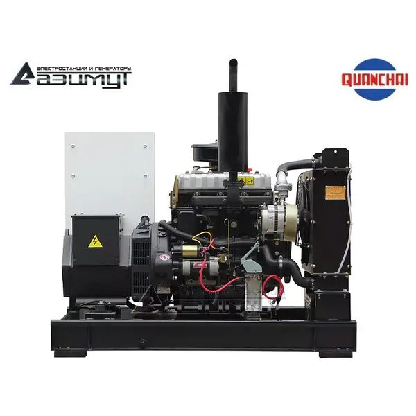 На стальной раме с виброопорами смонтированы: стационаярный дизель генератор ДГУ в составе: - первичного четырехцилиндрового дизельного двигателя водяного охлаждения с механической регулировкой частоты вращения Quanchai N485D, объемом 2,156 литра и номинальной мощностью 15,5 кВт, с промышленным глушителем, стандартным радиаторным блоком охлаждения и подогревателем охлаждающей жидкости,- синхронного бесщеточного 1-фазного (220 В) генератора Azimut Z164DI номинальной мощностью 12 кВт c автоматической регулировкой напряжения, шкаф управления с автоматическим выключателем, блоком автоматического ввода резерва (АВР) и контроллером HGM6120 с жидкокристаллическим дисплеем, комплект аккумуляторных батарей с сетевым зарядным устройством, стальной топливный бак интегрирован в конструкцию рамы. НАЗНАЧЕНИЕ