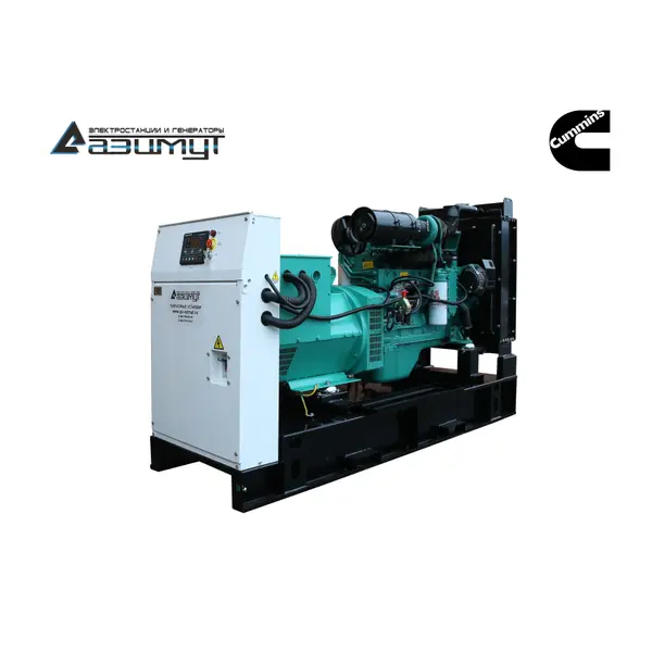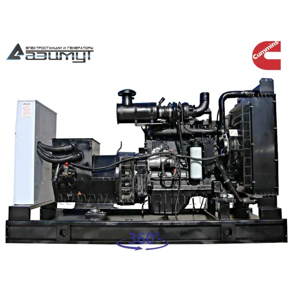 На стальной раме с виброопорами смонтированы: дизель генератор ДГУ в составе: - первичного шестицилиндрового дизельного двигателя водяного охлаждения с электронной регулировкой частоты вращения CUMMINS 6CTA8.3-G2, объемом 8,3 литра и номинальной мощностью 163 кВт, с промышленным глушителем и стандартным радиаторным блоком охлаждения, - синхронного бесщеточного генератора AZIMUT Z274G номинальной мощностью 150 кВт c автоматической регулировкой напряжения, шкаф управления с автоматическим выключателем и контроллером HGM6120 с жидкокристаллическим дисплеем, комплект аккумуляторных батарей, стальной топливный бак интегрирован в конструкцию рамы. НАЗНАЧЕНИЕ