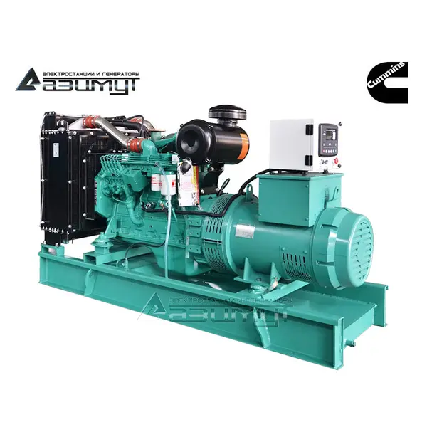 На стальной раме с виброопорами смонтированы: дизель генератор ДГУ в составе: - первичного шестицилиндрового дизельного двигателя водяного охлаждения с электронной регулировкой частоты вращения CUMMINS 6CTA8.3-G2, объемом 8,3 литра и номинальной мощностью 163 кВт, с промышленным глушителем, стандартным радиаторным блоком охлаждения и подогревателем охлаждающей жидкости,- синхронного бесщеточного генератора AZIMUT Z274G номинальной мощностью 150 кВт c автоматической регулировкой напряжения, шкаф управления с автоматическим выключателем, блоком автоматического ввода резерва (АВР) и контроллером HGM6120 с жидкокристаллическим дисплеем, комплект аккумуляторных батарей с сетевым зарядным устройством, стальной топливный бак интегрирован в конструкцию рамы. НАЗНАЧЕНИЕ