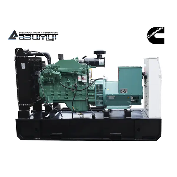 На стальной раме с виброопорами смонтированы: дизель генератор ДГУ 160 кВт в составе: - первичного шестицилиндрового дизельного двигателя водяного охлаждения с электронной регулировкой частоты вращения CUMMINS 6CTAA8.3-G2, объемом 8,3 литра и номинальной мощностью 183 кВт, с промышленным глушителем и стандартным радиаторным блоком охлаждения, - синхронного бесщеточного генератора AZIMUT Z274H номинальной мощностью 160 кВт c автоматической регулировкой напряжения, шкаф управления с автоматическим выключателем и контроллером HGM6120 с жидкокристаллическим дисплеем, комплект аккумуляторных батарей, стальной топливный бак интегрирован в конструкцию рамы. НАЗНАЧЕНИЕ