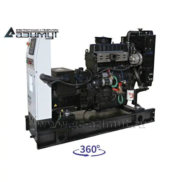 На стальной раме с виброопорами смонтированы: стационарный 3-фазный дизельный генератор ДГУ в составе: - первичного четырехцилиндрового дизельного двигателя водяного охлаждения с механической регулировкой частоты вращения AZIMUT 4R360D, объемом 3,61 литра и номинальной мощностью 30 кВт, с промышленным глушителем и стандартным радиаторным блоком охлаждения,- синхронного бесщеточного трехфазного генератора 380 В AZIMUT Z184E номинальной мощностью 16 кВт c автоматической регулировкой напряжения, шкаф управления с автоматическим выключателем и контроллером HGM6120 с жидкокристаллическим дисплеем, комплект аккумуляторных батарей, стальной топливный бак интегрирован в конструкцию рамы. НАЗНАЧЕНИЕ