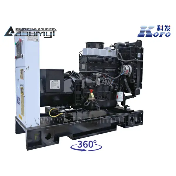 На стальной раме с виброопорами смонтированы: стационарный 3-фазный дизельный генератор ДГУ в составе: - первичного четырехцилиндрового дизельного двигателя водяного охлаждения с механической регулировкой частоты вращения Kofo N4100DS, объемом 3,61 литра и номинальной мощностью 30 кВт, с промышленным глушителем и стандартным радиаторным блоком охлаждения,- синхронного бесщеточного трехфазного генератора 380 В Azimut Z184E номинальной мощностью 16 кВт c автоматической регулировкой напряжения, шкаф управления с автоматическим выключателем и контроллером HGM6120 с жидкокристаллическим дисплеем, комплект аккумуляторных батарей, стальной топливный бак интегрирован в конструкцию рамы. НАЗНАЧЕНИЕ
