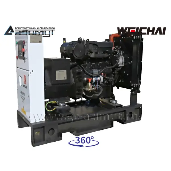 На стальной раме с виброопорами смонтированы: стационарный 3-фазный дизельный генератор ДГУ в составе: - первичного четырехцилиндрового дизельного двигателя водяного охлаждения с механической регулировкой частоты вращения WEICHAI WP2.3D25E200 с промышленным глушителем и стандартным радиаторным блоком охлаждения,- синхронного бесщеточного трехфазного генератора 380 В AZIMUT Z184E номинальной мощностью 16 кВт c автоматической регулировкой напряжения, шкаф управления с автоматическим выключателем и контроллером HGM6120 с жидкокристаллическим дисплеем, комплект аккумуляторных батарей, стальной топливный бак интегрирован в конструкцию рамы. НАЗНАЧЕНИЕ