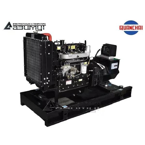 На стальной раме с виброопорами смонтированы: стационарный дизель генератор ДГУ в составе: - первичного четырехцилиндрового дизельного двигателя водяного охлаждения с механической регулировкой частоты вращения Quanchai QC490D, объемом 2,67 литра и номинальной мощностью 20 кВт, с промышленным глушителем, стандартным радиаторным блоком охлаждения и подогревателем охлаждающей жидкости,- синхронного бесщеточного генератора Azimut Z184E номинальной мощностью 16 кВт c автоматической регулировкой напряжения, шкаф управления с автоматическим выключателем, блоком автоматического ввода резерва (АВР) и контроллером HGM6120 с жидкокристаллическим дисплеем, комплект аккумуляторных батарей с сетевым зарядным устройством, стальной топливный бак интегрирован в конструкцию рамы. НАЗНАЧЕНИЕ
