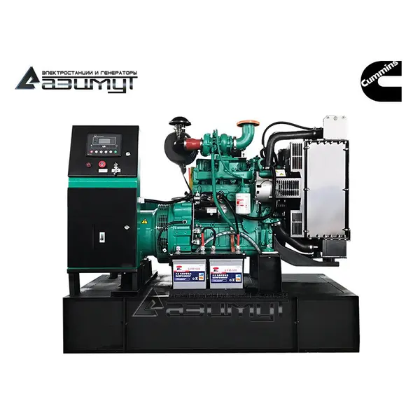 На стальной раме с виброопорами смонтированы: дизель генератор ДГУ в составе: - первичного четырехцилиндрового дизельного двигателя водяного охлаждения с механической регулировкой частоты вращения CUMMINS 4B3.9-G1, объемом 3,9 литра и номинальной мощностью 24 кВт, с промышленным глушителем и стандартным радиаторным блоком охлаждения,- синхронного бесщеточного генератора AZIMUT Z184F номинальной мощностью 20 кВт c автоматической регулировкой напряжения, шкаф управления с автоматическим выключателем и контроллером HGM6120 с жидкокристаллическим дисплеем, комплект аккумуляторных батарей, стальной топливный бак интегрирован в конструкцию рамы. НАЗНАЧЕНИЕ