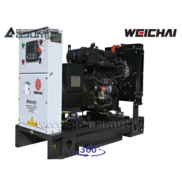На стальной раме с виброопорами смонтированы: стационарный 3-фазный дизельный генератор ДГУ в составе: - первичного четырехцилиндрового дизельного двигателя водяного охлаждения с механической регулировкой частоты вращения WEICHAI WP2.3D33E200 с промышленным глушителем и стандартным радиаторным блоком охлаждения,- синхронного бесщеточного трехфазного генератора 380 В AZIMUT Z184F номинальной мощностью 20 кВт c автоматической регулировкой напряжения, шкаф управления с автоматическим выключателем и контроллером HGM6120 с жидкокристаллическим дисплеем, комплект аккумуляторных батарей, стальной топливный бак интегрирован в конструкцию рамы. НАЗНАЧЕНИЕ