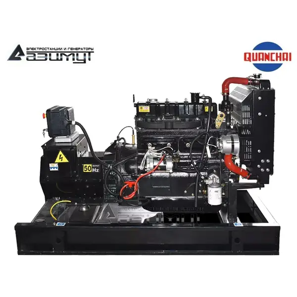 На стальной раме с виброопорами смонтированы: стационарный дизель генератор ДГУ в составе: - первичного четырехцилиндрового дизельного двигателя водяного охлаждения с механической регулировкой частоты вращения Quanchai QC498D, объемом 2,98 литра и номинальной мощностью 25,5 кВт, с промышленным глушителем, стандартным радиаторным блоком охлаждения и подогревателем охлаждающей жидкости,- синхронного бесщеточного генератора Quanchai Azimut Z184F номинальной мощностью 20 кВт c автоматической регулировкой напряжения, шкаф управления с автоматическим выключателем, блоком автоматического ввода резерва (АВР) и контроллером HGM6120 с жидкокристаллическим дисплеем, комплект аккумуляторных батарей с сетевым зарядным устройством, стальной топливный бак интегрирован в конструкцию рамы. НАЗНАЧЕНИЕ