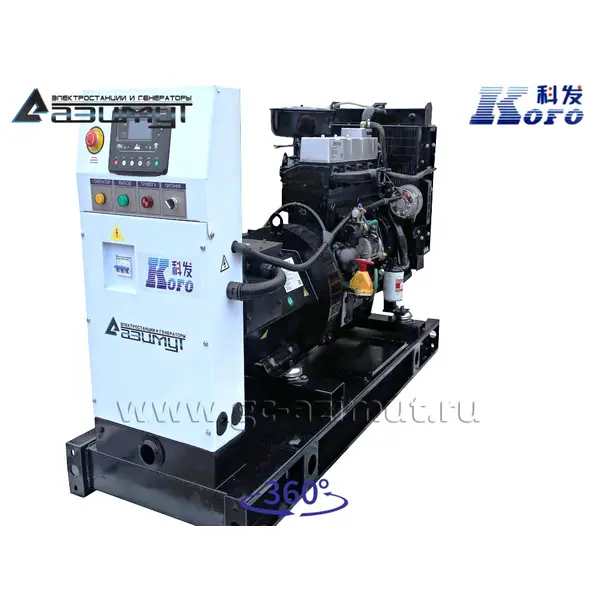 На стальной раме с виброопорами смонтированы: стационарный трехфазный дизель генератор ДГУ 24 кВт в составе: - первичного четырехцилиндрового дизельного двигателя водяного охлаждения с механической регулировкой частоты вращения Kofo N4100DS, объемом 3,61 литра и номинальной мощностью 30 кВт, с промышленным глушителем и стандартным радиаторным блоком охлаждения,- синхронного бесщеточного трехфазного генератора 380 В KOFO (Ricardo) Azimut Z184G номинальной мощностью 24 кВт c автоматической регулировкой напряжения, шкаф управления с автоматическим выключателем и контроллером HGM6120 с жидкокристаллическим дисплеем, комплект аккумуляторных батарей, стальной топливный бак интегрирован в конструкцию рамы. НАЗНАЧЕНИЕ