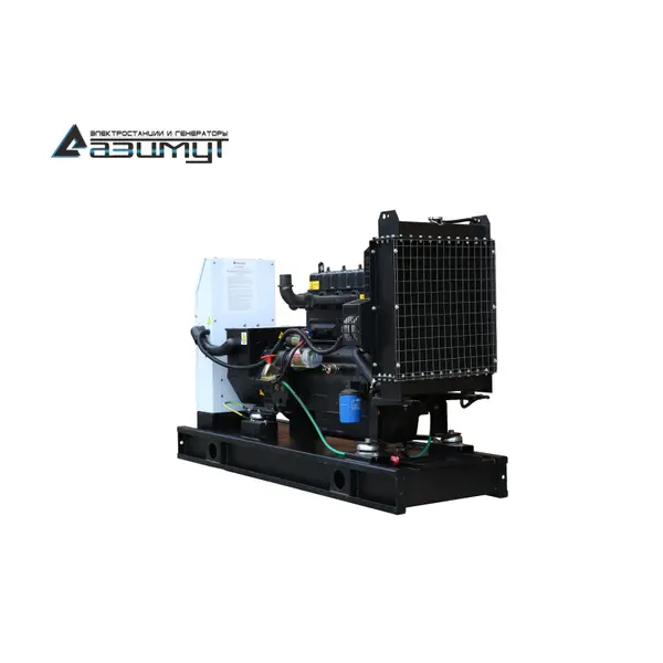 На стальной раме с виброопорами смонтированы: стационарный трехфазный дизельный генератор в составе: - первичного дизельного двигателя водяного охлаждения с механической регулировкой частоты вращения RICARDO K4100D, номинальной мощностью 30 кВт, с промышленным глушителем и стандартным радиаторным блоком охлаждения,- синхронного бесщеточного 3-фазного генератора на 380 В AZIMUT Z184G номинальной мощностью 24 кВт c автоматической регулировкой напряжения, шкаф управления электростанцией (ШУЭ) с блоком АВР, автоматическим выключателем и контроллером HGM6120 с жидкокристаллическим дисплеем, комплект аккумуляторных батарей, рама со стальным топливным баком на 8 часов работы. НАЗНАЧЕНИЕ