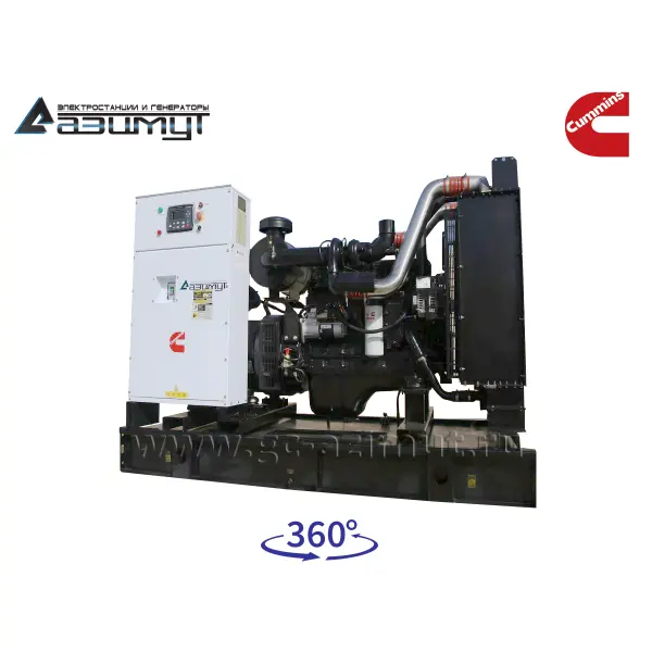 На стальной раме с виброопорами смонтированы: дизель генератор ДГУ в составе: - первичного шестицилиндрового дизельного двигателя водяного охлаждения с электронной регулировкой частоты вращения CUMMINS NTA855-G1B, объемом 14 литров и номинальной мощностью 284 кВт, с промышленным глушителем, стандартным радиаторным блоком охлаждения и подогревателем охлаждающей жидкости,- синхронного бесщеточного генератора AZIMUT ZC4ES номинальной мощностью 250 кВт c автоматической регулировкой напряжения, шкаф управления с автоматическим выключателем, блоком автоматического ввода резерва (АВР) и контроллером HGM6120 с жидкокристаллическим дисплеем, комплект аккумуляторных батарей с сетевым зарядным устройством, стальной топливный бак интегрирован в конструкцию рамы. НАЗНАЧЕНИЕ