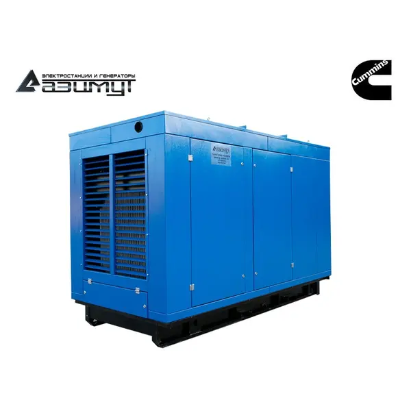 На стальной раме с виброопорами смонтированы: дизель генератор ДГУ в составе: - первичного шестицилиндрового дизельного двигателя водяного охлаждения с электронной регулировкой частоты вращения CUMMINS NTA855-G1B, объемом 14 литров и номинальной мощностью 284 кВт, с промышленным глушителем, стандартным радиаторным блоком охлаждения и подогревателем охлаждающей жидкости, - синхронного бесщеточного генератора AZIMUT ZC4ES номинальной мощностью 250 кВт c автоматической регулировкой напряжения, шкаф управления с автоматическим выключателем, блоком автоматического ввода резерва (АВР) и контроллером HGM6120 с жидкокристаллическим дисплеем, комплект аккумуляторных батарей с сетевым зарядным устройством, стальной топливный бак интегрирован в конструкцию рамы, на раме установлен погодозащитный капот. НАЗНАЧЕНИЕ