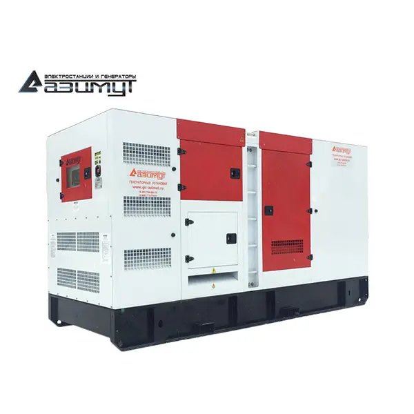 На стальной раме с виброопорами смонтированы: дизельный генератор в составе: - первичного шестицилиндрового дизельного двигателя водяного охлаждения с электронной регулировкой частоты вращения AZIMUT 6R1420TDI37, объемом 14,4 литра и номинальной мощностью 341 кВт, с промышленным глушителем и стандартным радиаторным блоком охлаждения,- синхронного бесщеточного генератора AZIMUT ZC4FS номинальной мощностью 300 кВт c автоматической регулировкой напряжения, шкаф управления с автоматическим выключателем и контроллером HGM6120 с жидкокристаллическим дисплеем, комплект аккумуляторных батарей, стальной топливный бак интегрирован в конструкцию рамы, всепогодный шумозащитный кожух установлен на раму. НАЗНАЧЕНИЕ