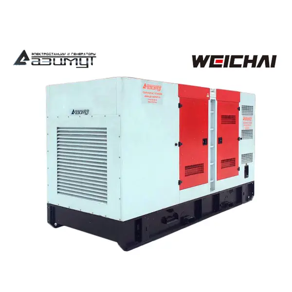На стальной раме с виброопорами смонтированы: дизель генератор ДГУ в составе: - первичного шестицилиндрового дизельного двигателя водяного охлаждения с электронной регулировкой частоты вращения WEICHAI WP13D385E200 с промышленным глушителем и стандартным радиаторным блоком охлаждения,- синхронного бесщеточного генератора AZIMUT ZC4FS номинальной мощностью 300 кВт c автоматической регулировкой напряжения, шкаф управления с автоматическим выключателем, блоком автоматического ввода резерва (АВР) и контроллером HGM6120 с жидкокристаллическим дисплеем, комплект аккумуляторных батарей с сетевым зарядным устройством, стальной топливный бак интегрирован в конструкцию рамы, шумозащитный всепогодный кожух НАЗНАЧЕНИЕ