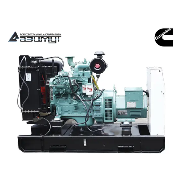 На стальной раме с виброопорами смонтированы: дизель генератор ДГУ в составе: - первичного четырехцилиндрового дизельного двигателя водяного охлаждения с механической регулировкой частоты вращения CUMMINS 4BТ3.9-G1, объемом 3,9 литра и номинальной мощностью 36 кВт, с промышленным глушителем, стандартным радиаторным блоком охлаждения, - синхронного бесщеточного генератора AZIMUT Z184F номинальной мощностью 30 кВт c автоматической регулировкой напряжения, шкаф управления с автоматическим выключателем и контроллером HGM6120 с жидкокристаллическим дисплеем, комплект аккумуляторных батарей, стальной топливный бак интегрирован в конструкцию рамы, всепогодный шумозащитный кожух установлен на раму. НАЗНАЧЕНИЕ