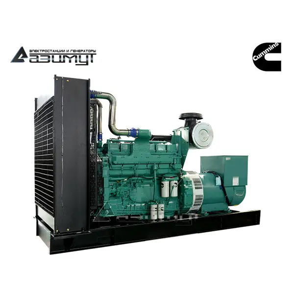 На стальной раме с виброопорами смонтированы: дизель генератор ДГУ 400 кВт в составе: - первичного шестицилиндрового дизельного двигателя водяного охлаждения с электронной регулировкой частоты вращения CUMMINS KTA19-G3A, объемом 18,9 литров и номинальной мощностью 448 кВт, с промышленным глушителем, стандартным радиаторным блоком охлаждения и подогревателем охлаждающей жидкости,- синхронного бесщеточного генератора AZIMUT ZC5D номинальной мощностью 400 кВт c автоматической регулировкой напряжения, шкаф управления с автоматическим выключателем, блоком автоматического ввода резерва (АВР) и контроллером HGM6120 с жидкокристаллическим дисплеем, комплект аккумуляторных батарей с сетевым зарядным устройством, стальной топливный бак интегрирован в конструкцию рамы. НАЗНАЧЕНИЕ
