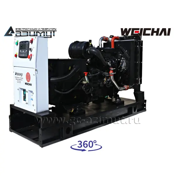На стальной раме с виброопорами смонтированы: стационарный трехфазный дизель генератор в составе: - первичного четырехцилиндрового дизельного двигателя водяного охлаждения с механической регулировкой частоты вращения WEICHAI WP4.1D66E200 с промышленным глушителем и стандартным радиаторным блоком охлаждения,- синхронного бесщеточного генератора AZIMUT Z224E номинальной мощностью 50 кВт c автоматической регулировкой напряжения, шкаф управления с автоматическим выключателем и контроллером HGM6120 с жидкокристаллическим дисплеем, комплект аккумуляторных батарей, стальной топливный бак интегрирован в конструкцию рамы. НАЗНАЧЕНИЕ