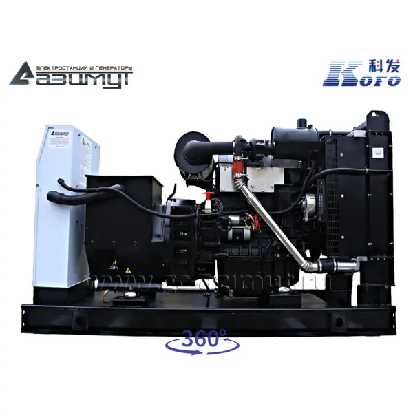 На стальной раме с виброопорами смонтированы: стационарный трехфазный дизель генератор ДГУ в составе: - первичного четырехцилиндрового дизельного двигателя водяного охлаждения с механической регулировкой частоты вращения Kofo 4RT55-88D, объемом 5,32 литра и номинальной мощностью 88 кВт, с промышленным глушителем и стандартным радиаторным блоком охлаждения, - синхронного бесщеточного трехфазного генератора Azimut Z274C номинальной мощностью 80 кВт c автоматической регулировкой напряжения, шкаф управления с автоматическим выключателем и контроллером HGM6120 с жидкокристаллическим дисплеем, комплект аккумуляторных батарей, стальной топливный бак интегрирован в конструкцию рамы. НАЗНАЧЕНИЕ