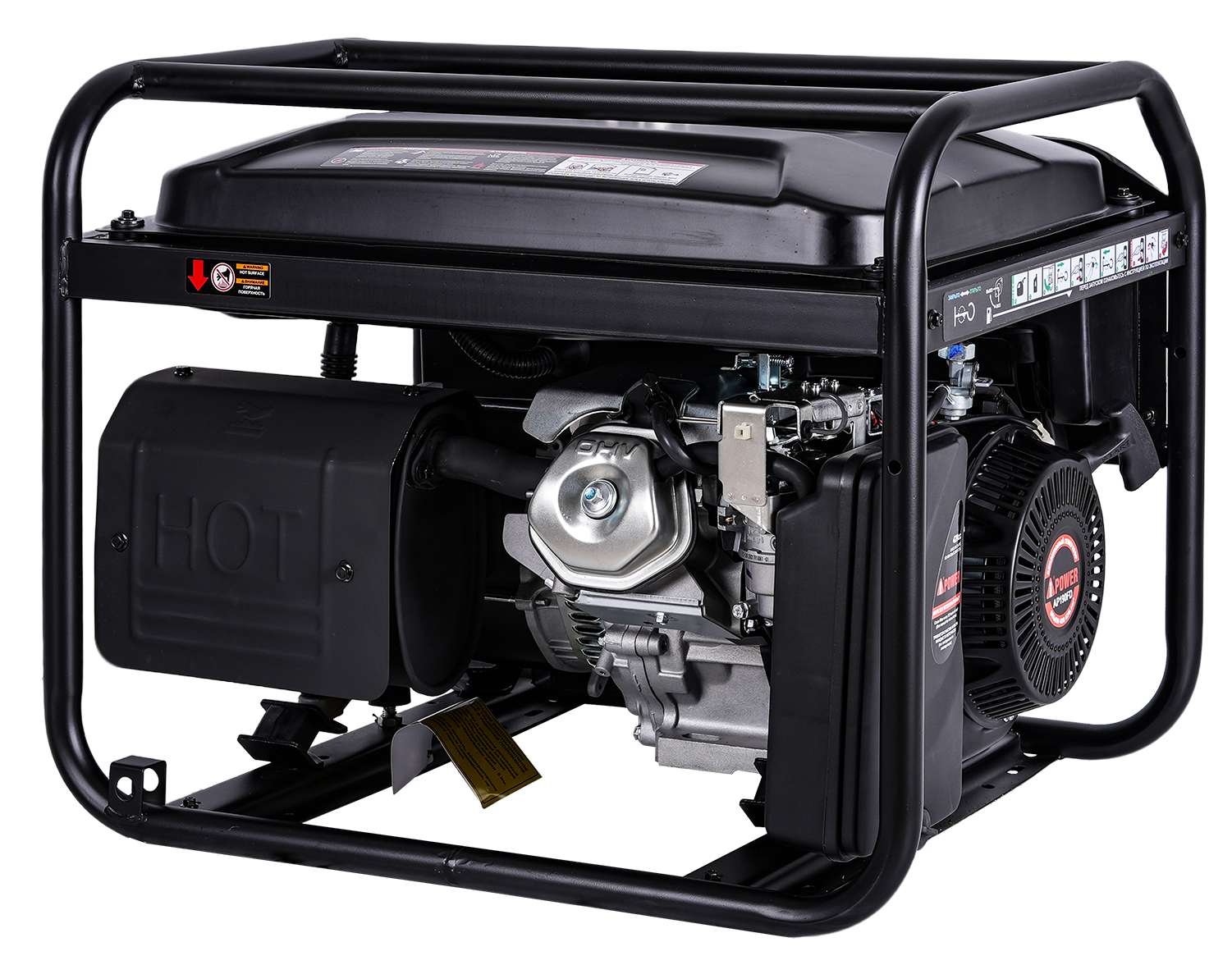 которые при перегрузке предотвратят выход из строя и остановят генератор. Также система защиты предотвратит запуск двигателя при снижении уровня масла. А от внешних повреждений защитит мощная рама.