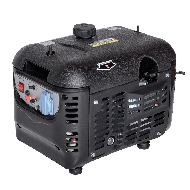 - Автоматический регулятор напряжения обеспечивает высокое качество выходного напряжения бензогенератора