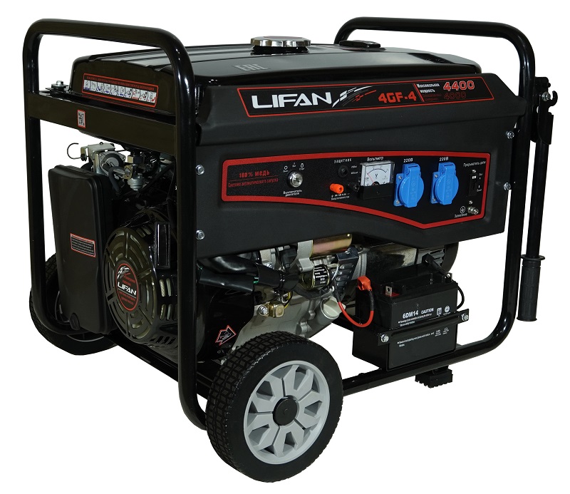 Бензиновая электростанция LIFAN 4 GF-4 (LF5000E) оптимально сочетает в себе соотношение невысокой цены и отличного качества. Подходит для использования в сети загородного дома, для проведения строительных работ.