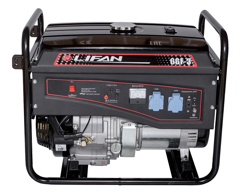 Бензиновая электростанция LIFAN 6 GF-3 (LF7000) оптимально сочетает в себе соотношение невысокой цены и отличного качества. Подходит для использования в сети загородного дома, для проведения строительных работ.