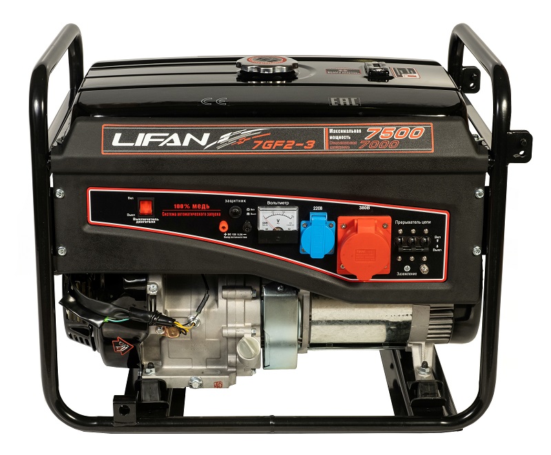 Бензиновая электростанция LIFAN 7 GF2-3 (7500-3) оптимально сочетает в себе соотношение невысокой цены и отличного качества. Подходит для использования в сети загородного дома, для проведения строительных работ.
