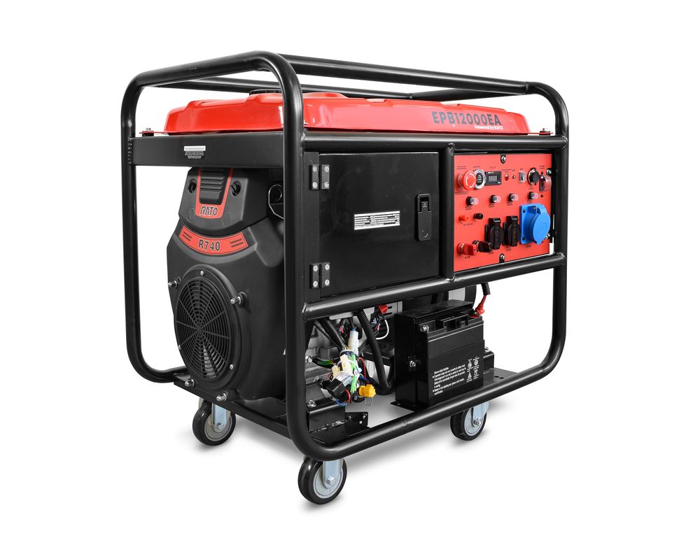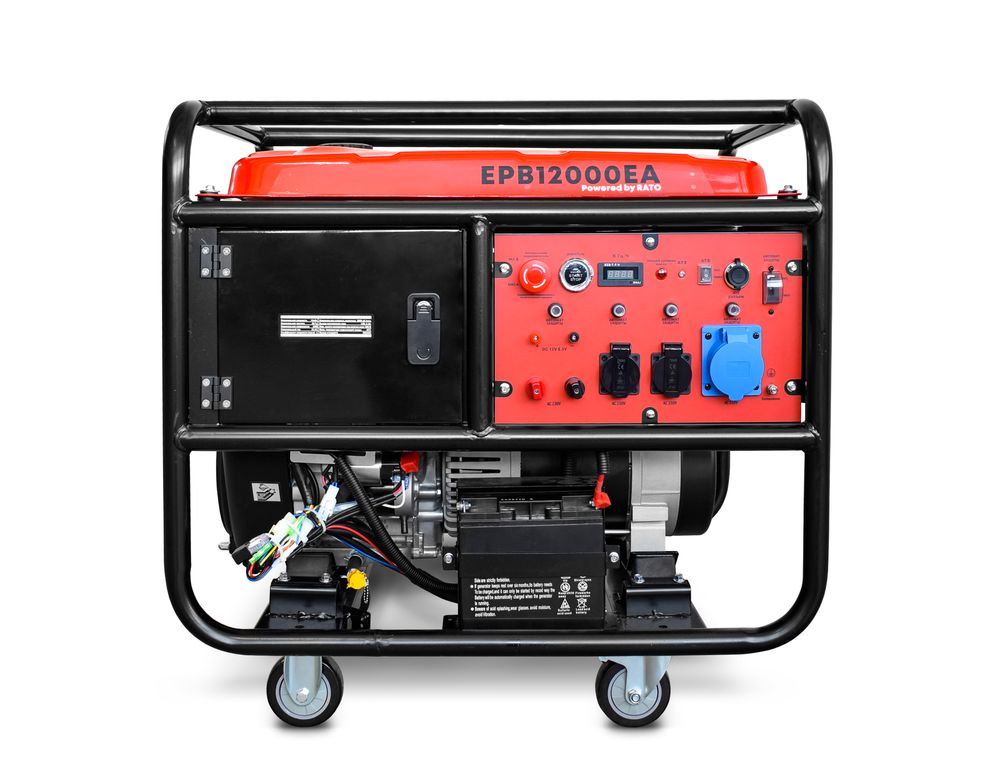 Электроагрегат EPB12000EA оснащен электростартером, позволяющим быстро запустить его в работу, даже в самых сложных условиях. Однофазная станция оснащена автоматическим регулятором напряжения (АРН, AVR), который поддерживает напряжение 230 В при частоте 50 Гц. Для безопасного подключения к сети установлены две розетки по 16 А и одно 32 А, а также клеммы постоянного тока 100 А. Бензогенератор оснащен подготовкой к подключению автоматического выключателя резервного питания (ATS), что позволяет автоматически включать и выключать генератор при сбоях в сети. Для удобства транспортировки и размещения на территории объекта, генератор оснащен универсальными колесами 4 дюйма. Генератор оснащен топливным баком 30 л.