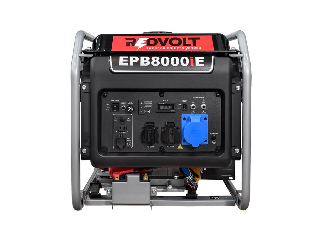 Бензогенератор инверторный REDVOLT EPB8000iE - это мощный инверторный генератор с электростартером, который идеально подходит для питания различных устройств и оборудования мощностью до 7,5 кВт. На панели генератора расположены розетки различного номинала: 1 розетка на 32 А для подключения мощных потребителей и две розетки на 16 А для бытовых приборов. Также имеется USB-порт для зарядки мобильных устройств и розетка на 12 В постоянного тока для зарядки аккумуляторов. Мультиметр на панели генератора позволяет контролировать основные параметры электрической сети: частоту, напряжение и время наработки. Панель индикации обеспечивает визуальный контроль состояния генератора, а большой бак на 15 литров и аккумуляторная батарея обеспечивают длительное время работы без дозаправки. Колесный комплект позволяет легко перемещать генератор на нужное место, а его мощность и функциональность делают его отличным выбором для профессионального использования или использования в бытовых условиях.