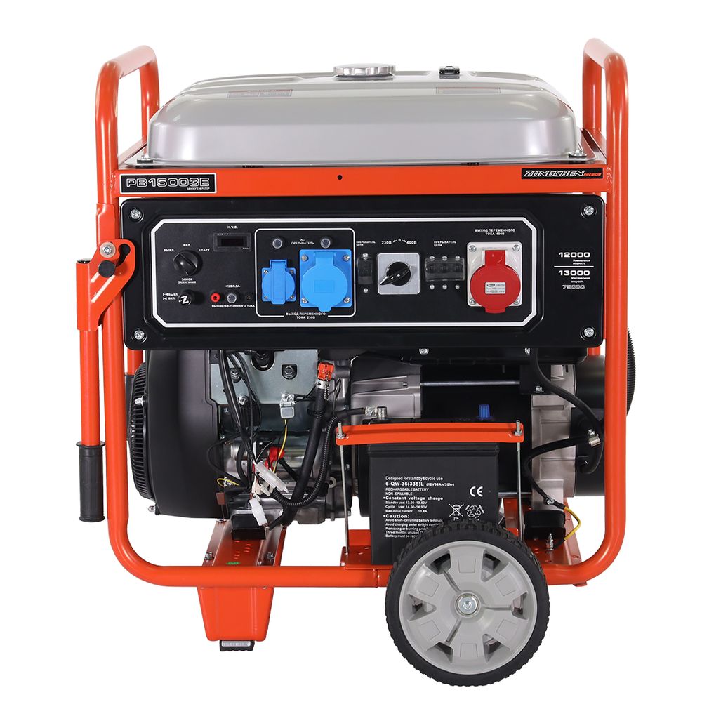 - счетчик моточасов + 1 розетка (16А) + силовая розетка (32А) + трехфазная розетка + AVR + электростартер + колеса для транспорт-ки в комплекте
