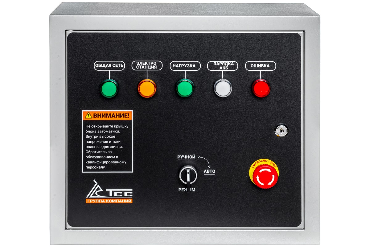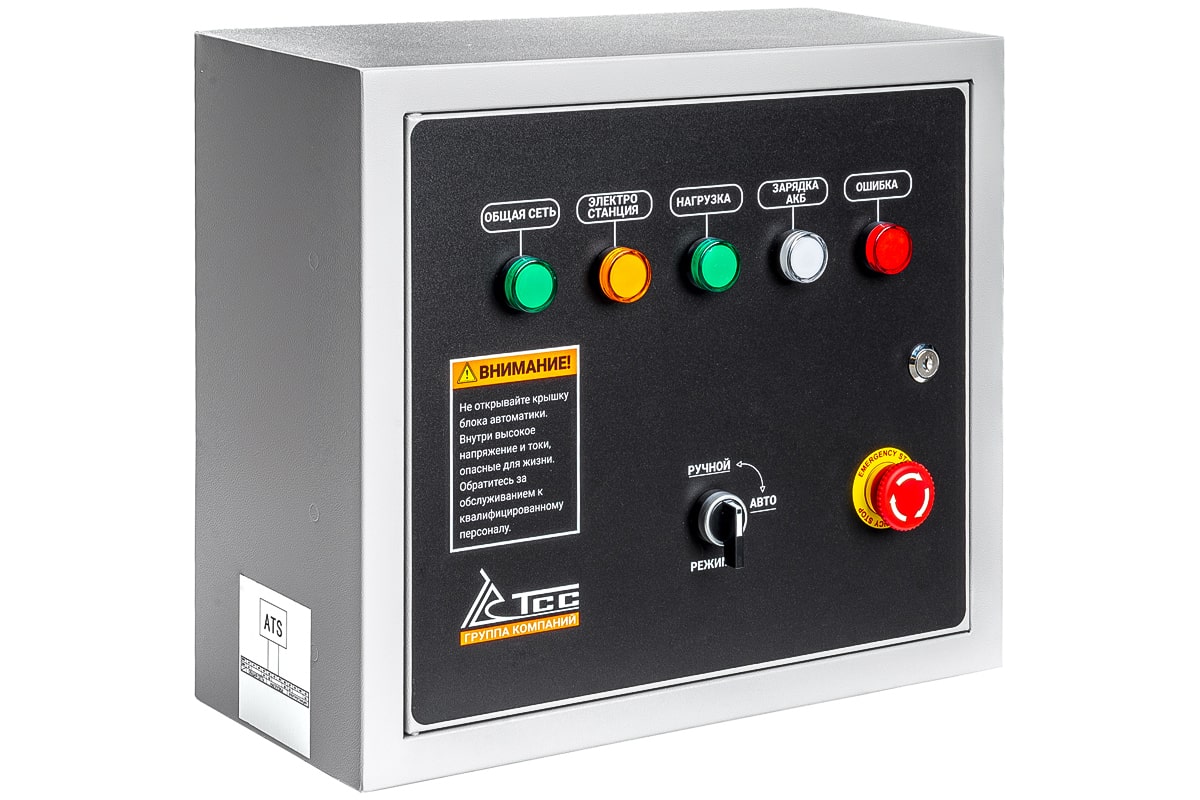Блок АВР для инверторных бензиновы генераторов включает в себя систему автозапуска (автоматического ввода резервного электропитания). При появлении основного источника электропитания происходит отключение электростанции. Блок автоматического управления для контроля наличия напряжения в сети. Комплектуется кабелем 8 м для подключения к электростанции. Блок автоматики оснащен автоматическим реверсивным рубильником (номинальный ток 100А). Рубильник предназначен для переключения нагрузки на резервную линию с разрывом питания (индикация положений на рубильнике I-0-II). Блок АВР-С 9000/230/400, арт. 190777 совместим со следующими моделями генераторов: арт. 060034, Бензогенератор инверторный SGG 8000Ei, арт. 060035, Бензогенератор инверторный SGG 10000Ei, арт. 060059, Бензогенератор инверторный SGG 6000Ei, арт. 060063, Бензогенератор инверторный SGG 6000ESi, ГАРАНТИЯ И СЕРВИСНОЕ ОБСЛУЖИВАНИЕ На блок АВР ТСС предоставляется гарантия 12 месяцев. Cеть авторизованных сервисных центров ГК ТСС обеспечивает поставку запасных частей, проведение регламентного технического обслуживания, гарантийного и постгарантийного обслуживания во всех регионах России, что выгодно отличает продукцию ТСС от большинства конкурентов.