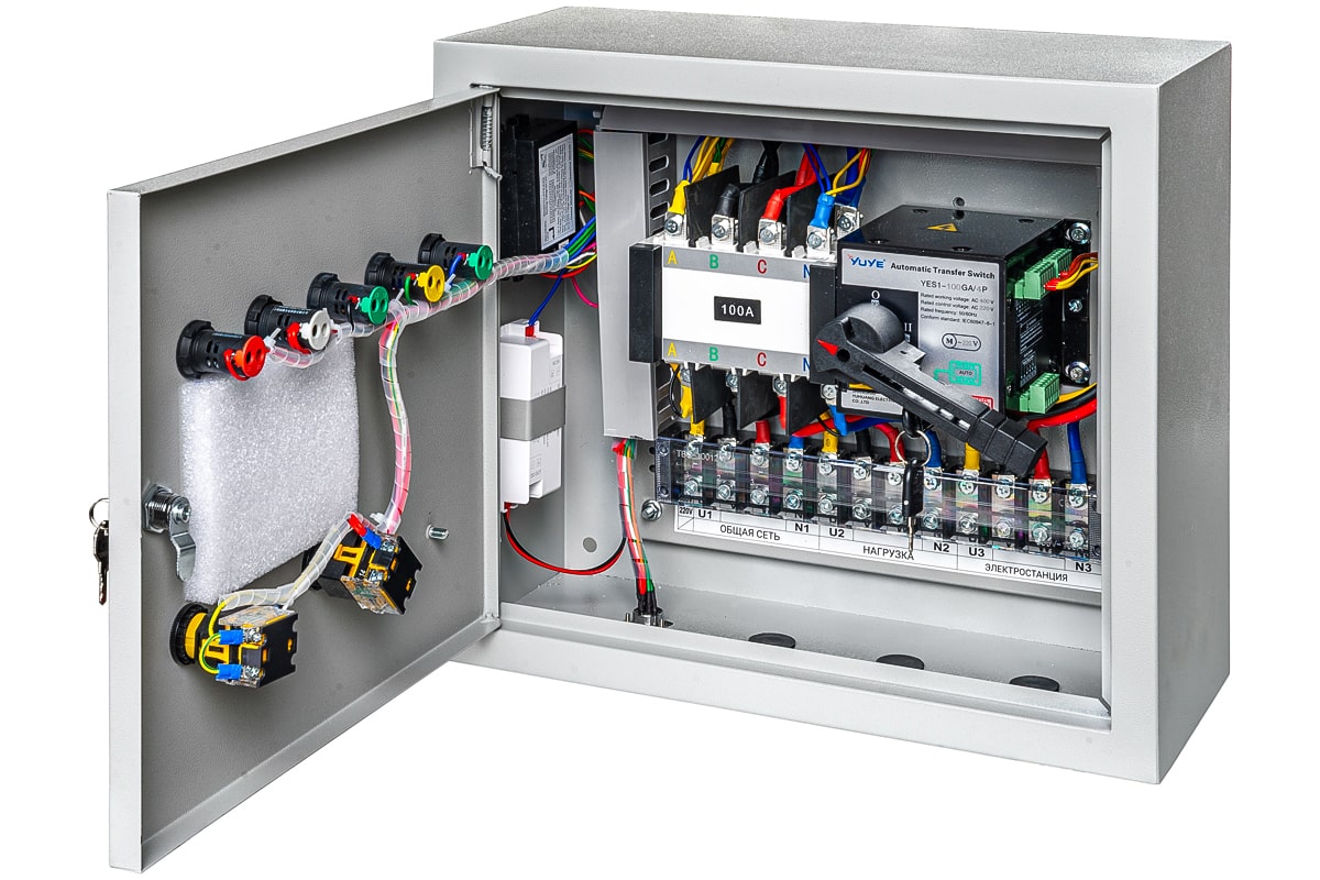 Предназначен для автоматического запуска инверторного бензинового генератора в момент пропадания основного источника электроэнергии и переключения нагрузки без вмешательства человека
