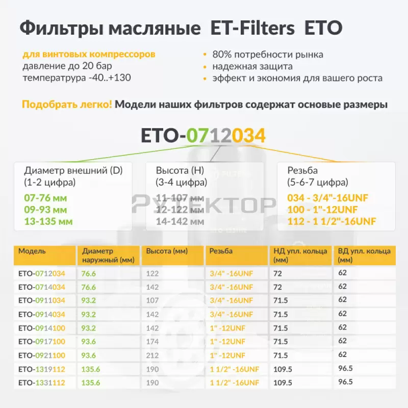 ETO-1319112 соответствует указанным фильтрам по техническим характеристикам, эффективности фильтрации, размерам и присоединительной резьбе: