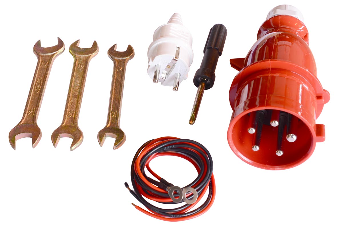 - Электрическая вилка, блок АВР, предпусковой подогреватель, комплект проводов, ручки и колёса,