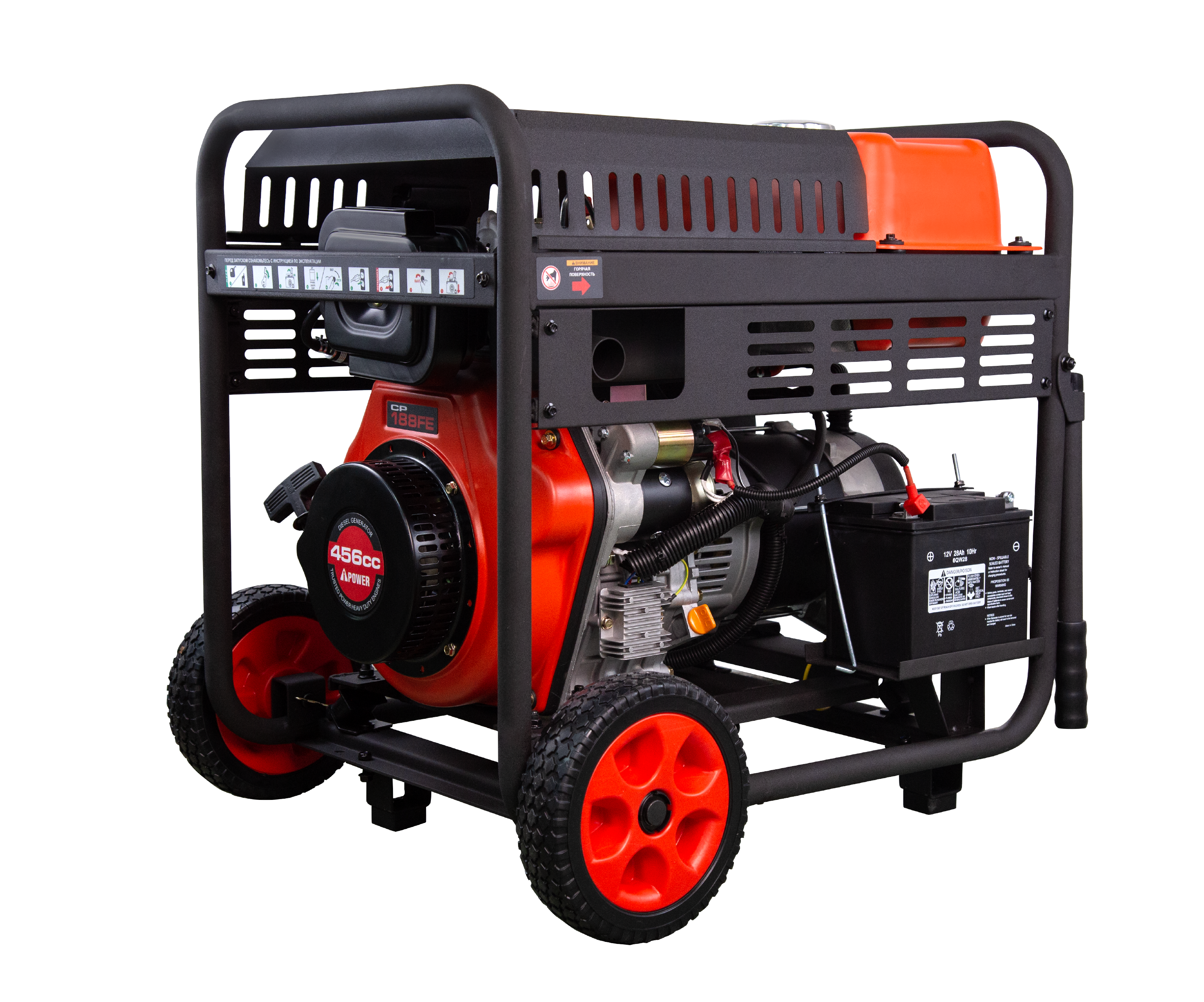 Дизельный 4-тактный OHV-двигатель объемом 456 м3 обеспечивает высокий ресурс работы генератора.