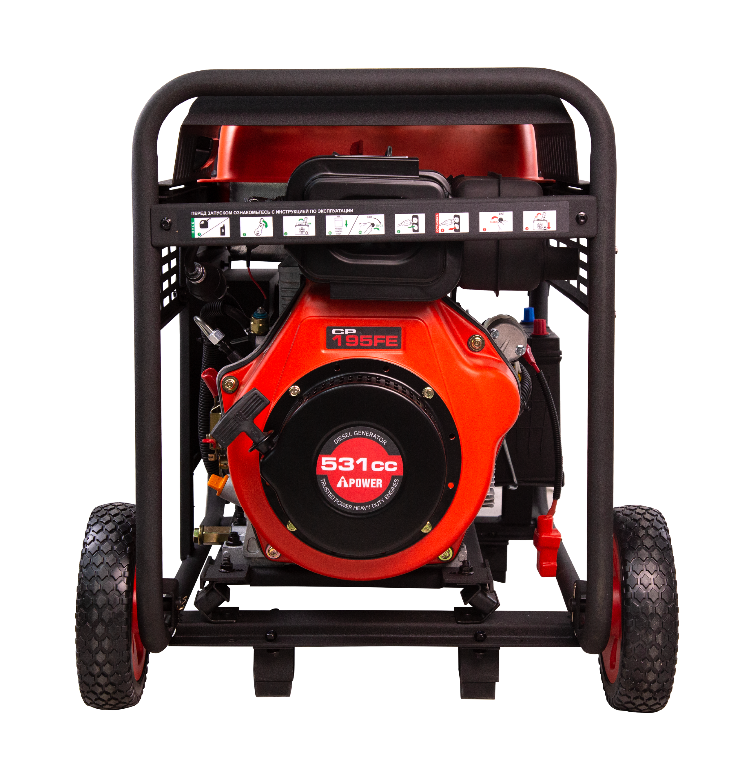 Дизельный 4-тактный OHV-двигатель объемом 531 м3 обеспечивает высокий ресурс работы генератора.