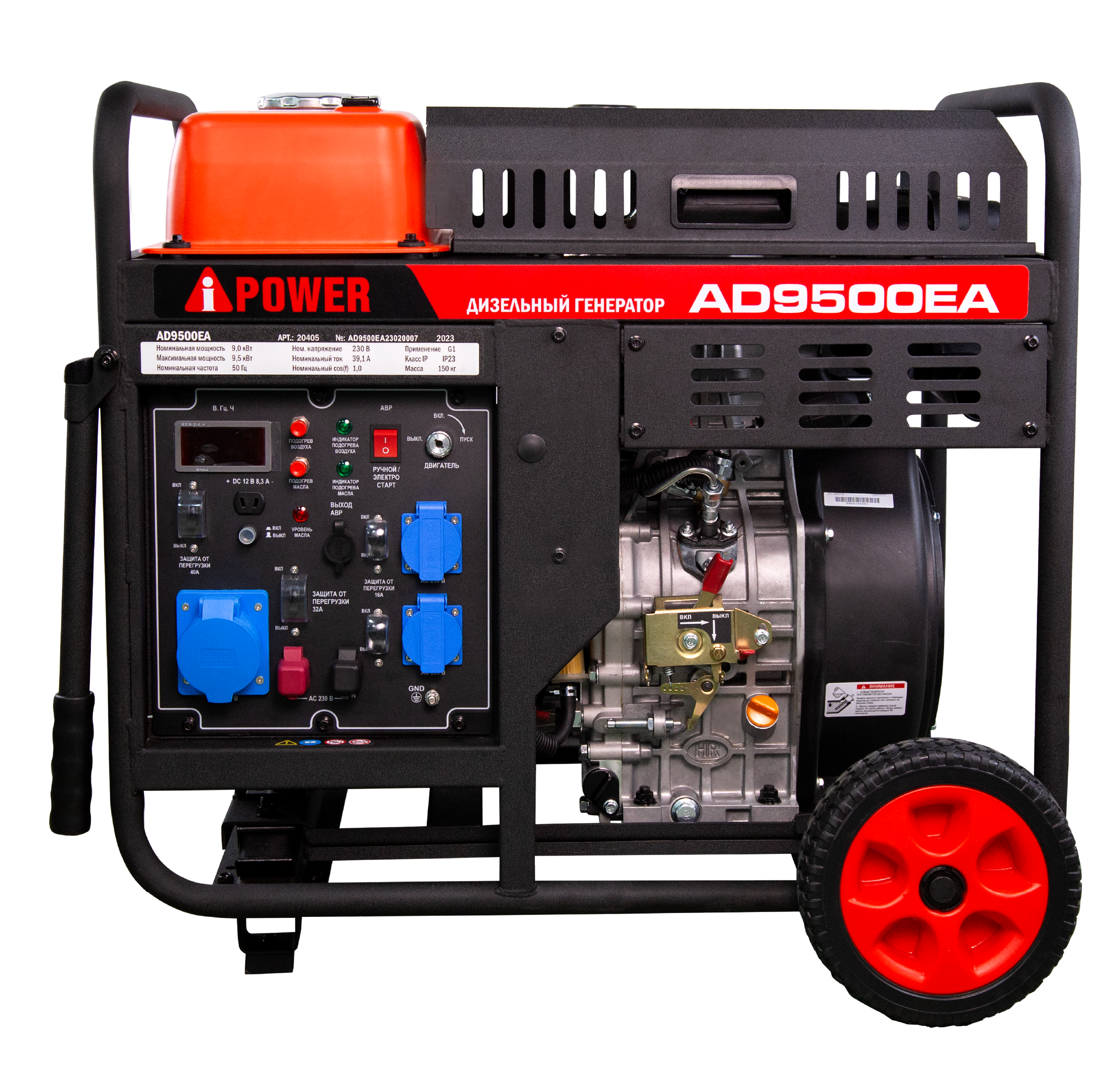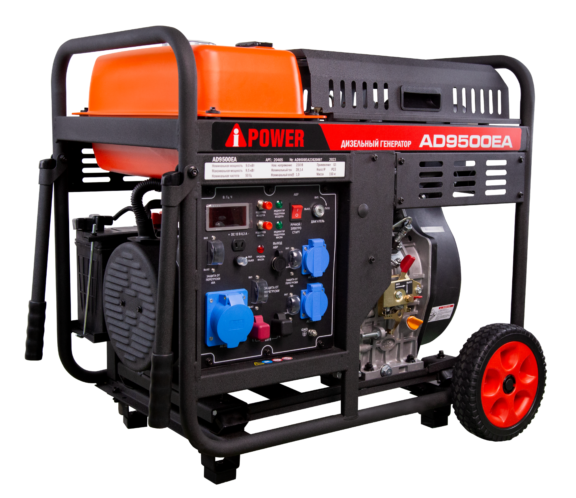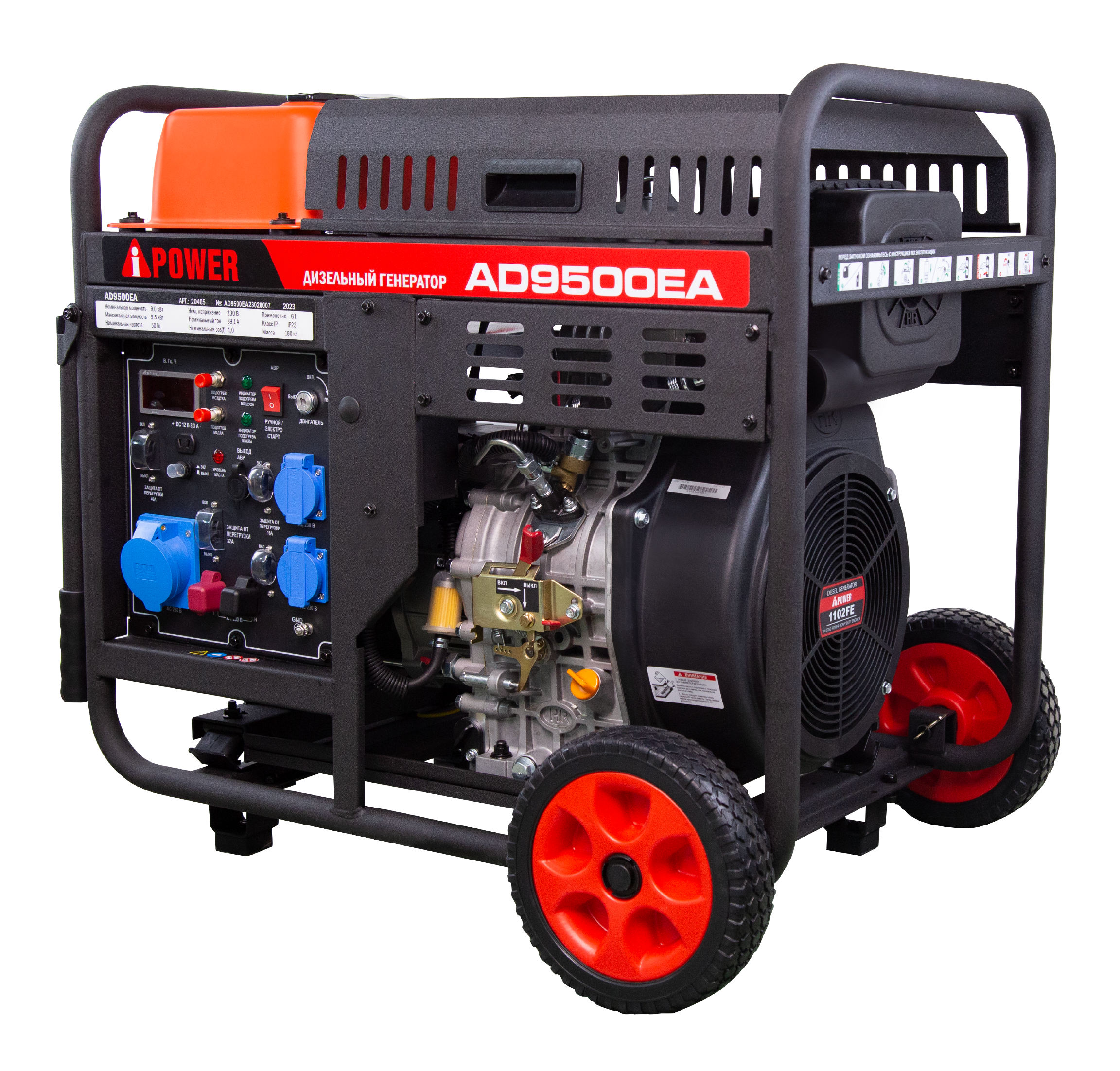 Дизельный генератор AD9500EA – однофазная электростанция номинальной мощностью 9 кВт с дизельным двигателем воздушного охлаждения. Отлично подходит для мобильного электроснабжения загородных домов
