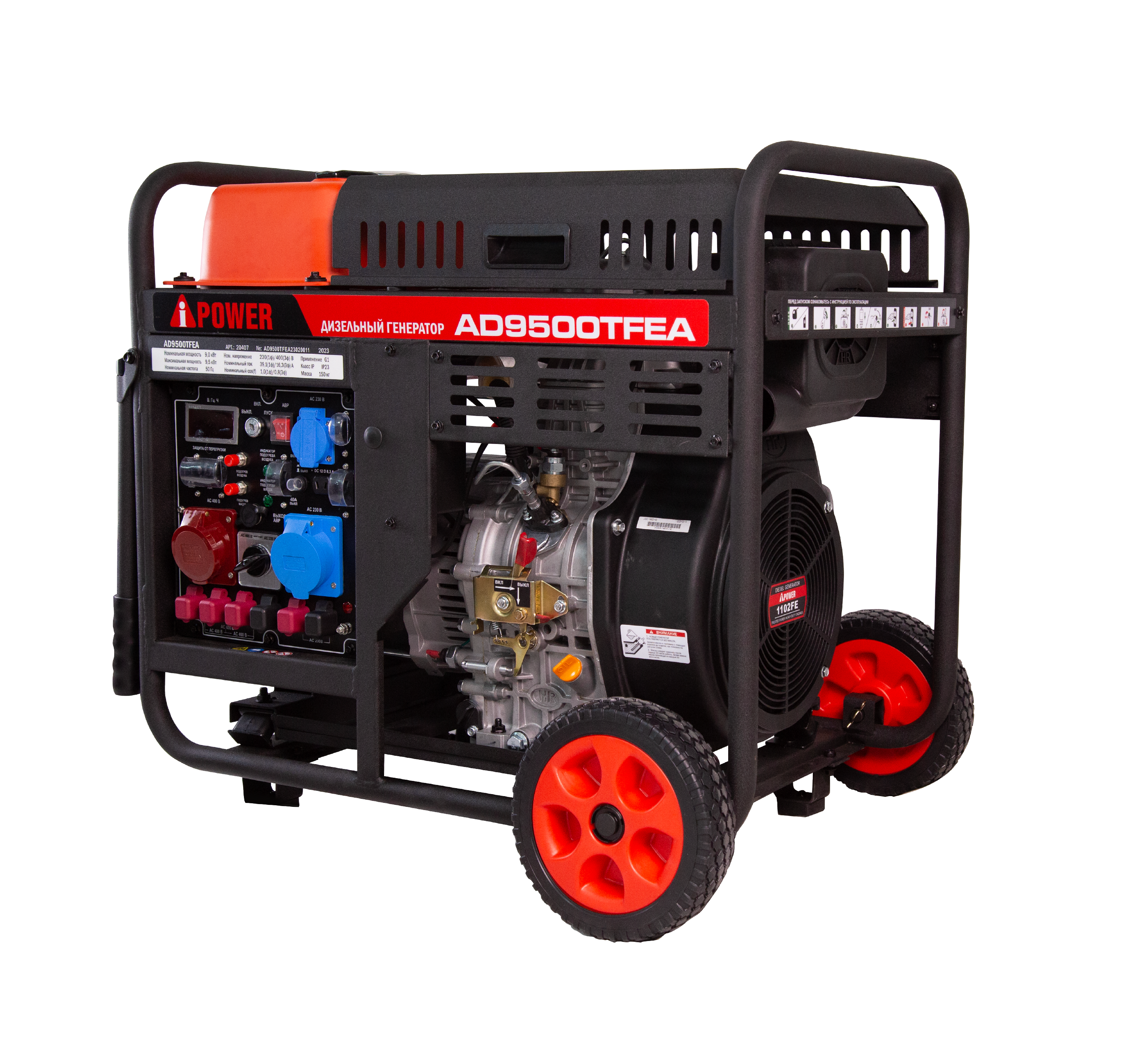 Дизельный генератор AD9500TFEA – равномощная электростанция номинальной мощностью 9 кВт с дизельным двигателем воздушного охлаждения. Отлично подходит для мобильного электроснабжения загородных домов