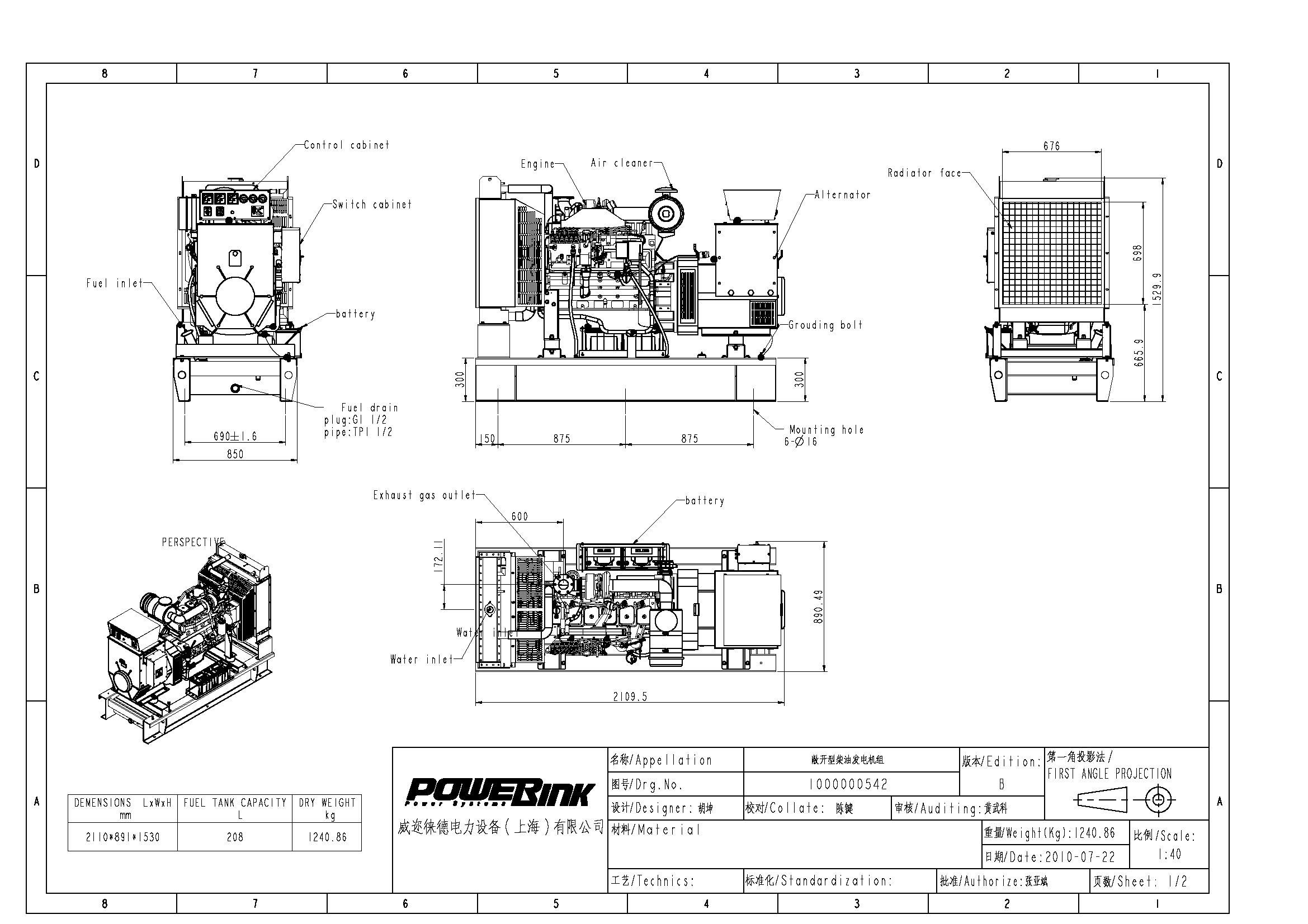 Генератор PowerLink или Stamford. С защитным экраном, каплезащищенный, бесщеточный, с вращающимся магнитным полем с самовозбуждением, 4-полюсный, с кожухом по IP23, с одним подшипником с саморегулированием, с автоматическим регулятором напряжения.