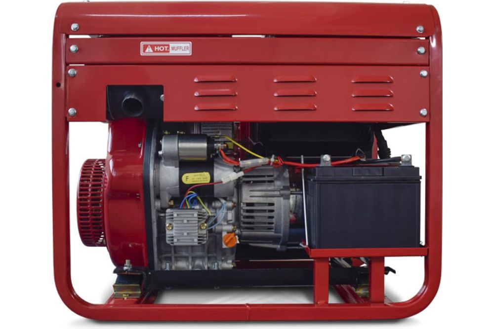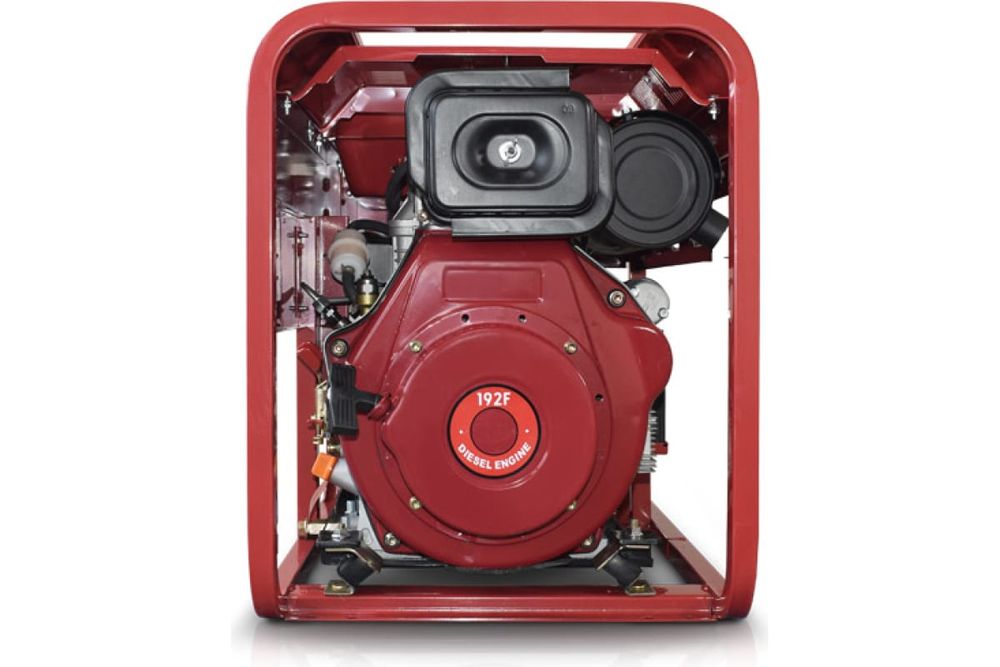 Двигатель: мощный одноцилиндровый 4-х тактный дизельный двигатель 192FE с рабочим объемом 498 см3 и мощностью 12,5 л.с. обеспечивает долговременную бесперебойную работы станции с номинальной нагрузкой и позволяет выдерживать кратковременные перегрузки.