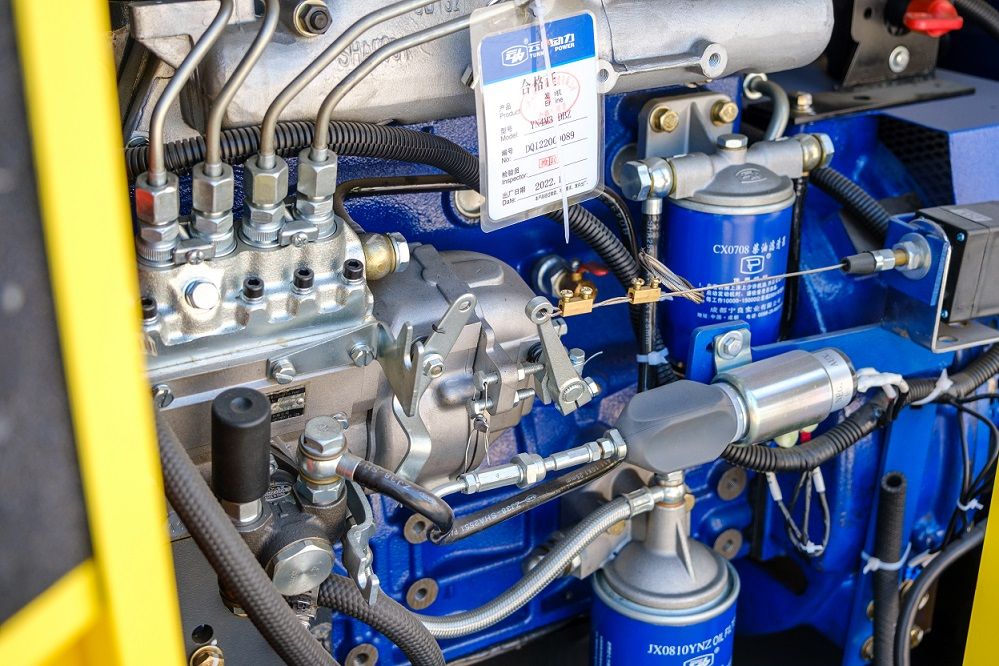 Топливный бак увеличенного объема обеспечивает автономную работу агрегата в течение 9-10 часов. Встроенный датчик уровня топлива позволяет осуществлять визуальный контроль остатка топлива в баке. При понижении давления масла ниже допустимого уровня на панели управления загорается сигнальная лампа.