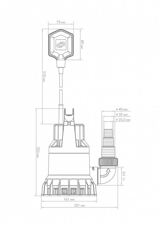 - Для нормальной работы поплавкового выключателя необходимо пространство не менее чем 500х500 мм.