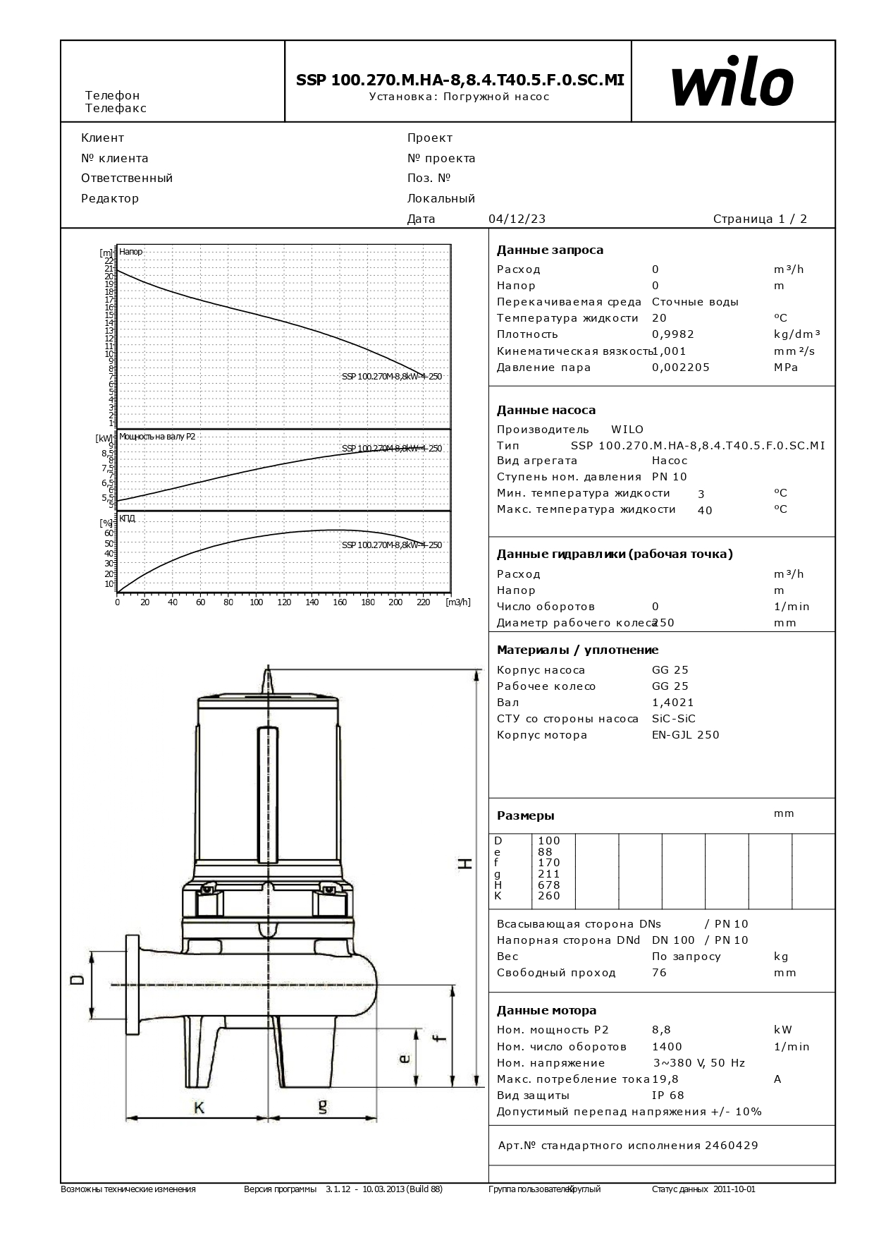Технические особенности Wilo Rexa SSP 100.270.M.HA-8,8.4.T40.5.F.0.SC.MI