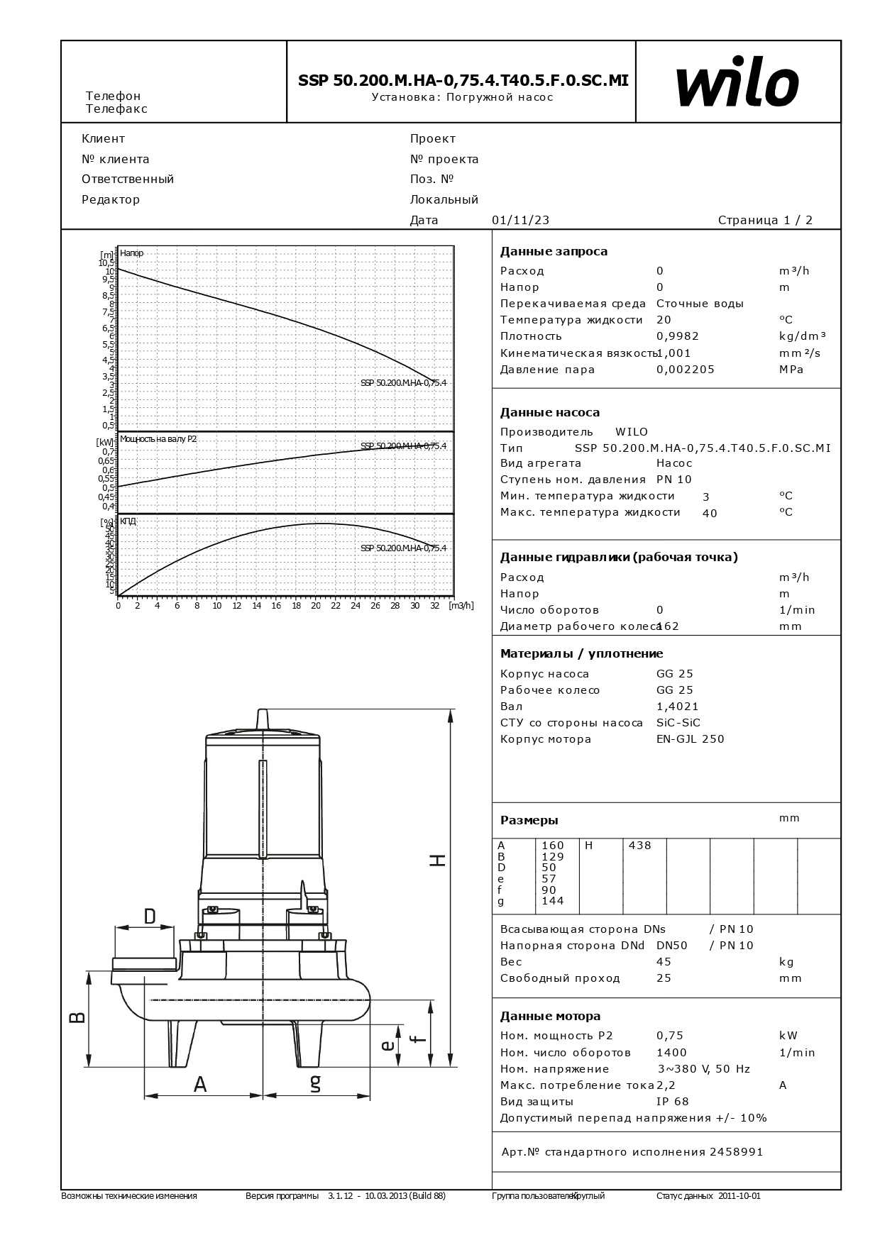 Технические особенности Wilo Rexa SSP 50.200.M.HA-0,75.4.T40.5.F.0.SC.MI