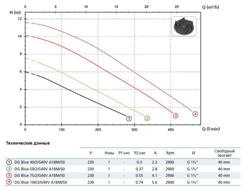 - Оптимальный диаметр шлангов 32-40 мм, кроме модели 550/14, для неё оптимальный диаметр 50-65 мм.