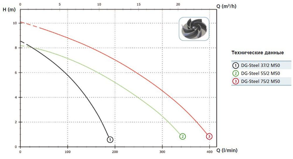 - Оптимальный диаметр шлангов 32-40 мм, кроме модели 550/14, для неё оптимальный диаметр 50-65 мм.