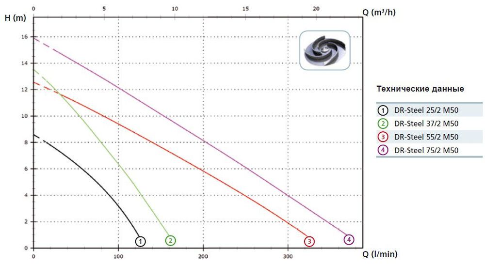 - Оптимальный диаметр шлангов 32-40 мм, кроме модели 550/14, для неё оптимальный диаметр 50-65 мм.