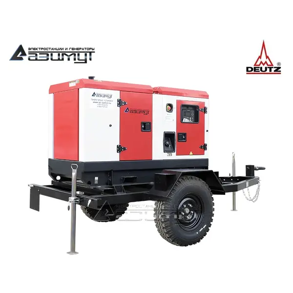 На стальной раме с виброопорами смонтированы: дизель генератор ДГУ в составе: - первичного четырехцилиндрового дизельного двигателя водяного охлаждения с механической регулировкой частоты вращения DEUTZ BFM3 G1 с промышленным глушителем и стандартным радиаторным блоком охлаждения, - синхронного бесщеточного генератора 380 В AZIMUT Z184F номинальной мощностью 20 кВт c автоматической регулировкой напряжения, шкаф управления с автоматическим выключателем и контроллером HGM6120 с жидкокристаллическим дисплеем, комплект аккумуляторных батарей, стальной топливный бак интегрирован в конструкцию рамы, на раму установлен всепогодный капот, дизель генераторная электростанция установлена на шасси. НАЗНАЧЕНИЕ